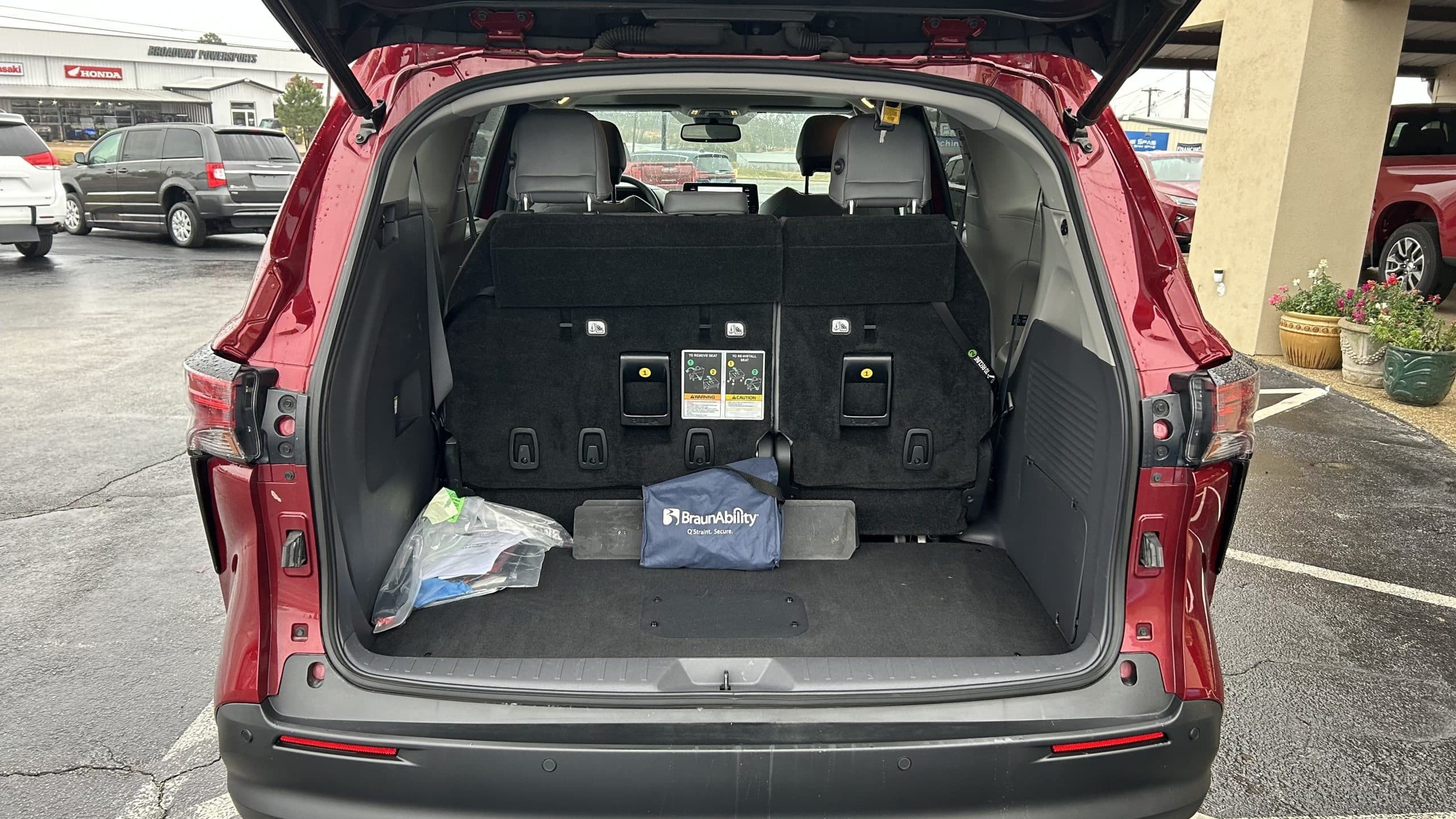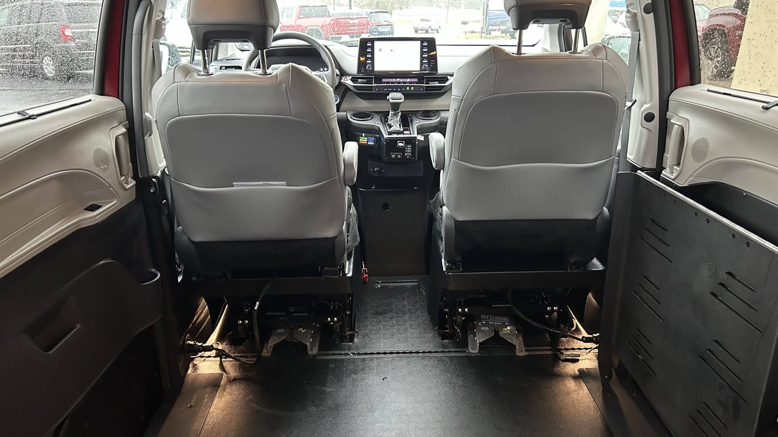 Finished in Ruby Red with a Graphite interior, this Sienna includes the XLE trim package and powered sliding doors on both sides of the passenger area, providing added convenience and accessibility. A power sun/moonroof adds comfort and style.
