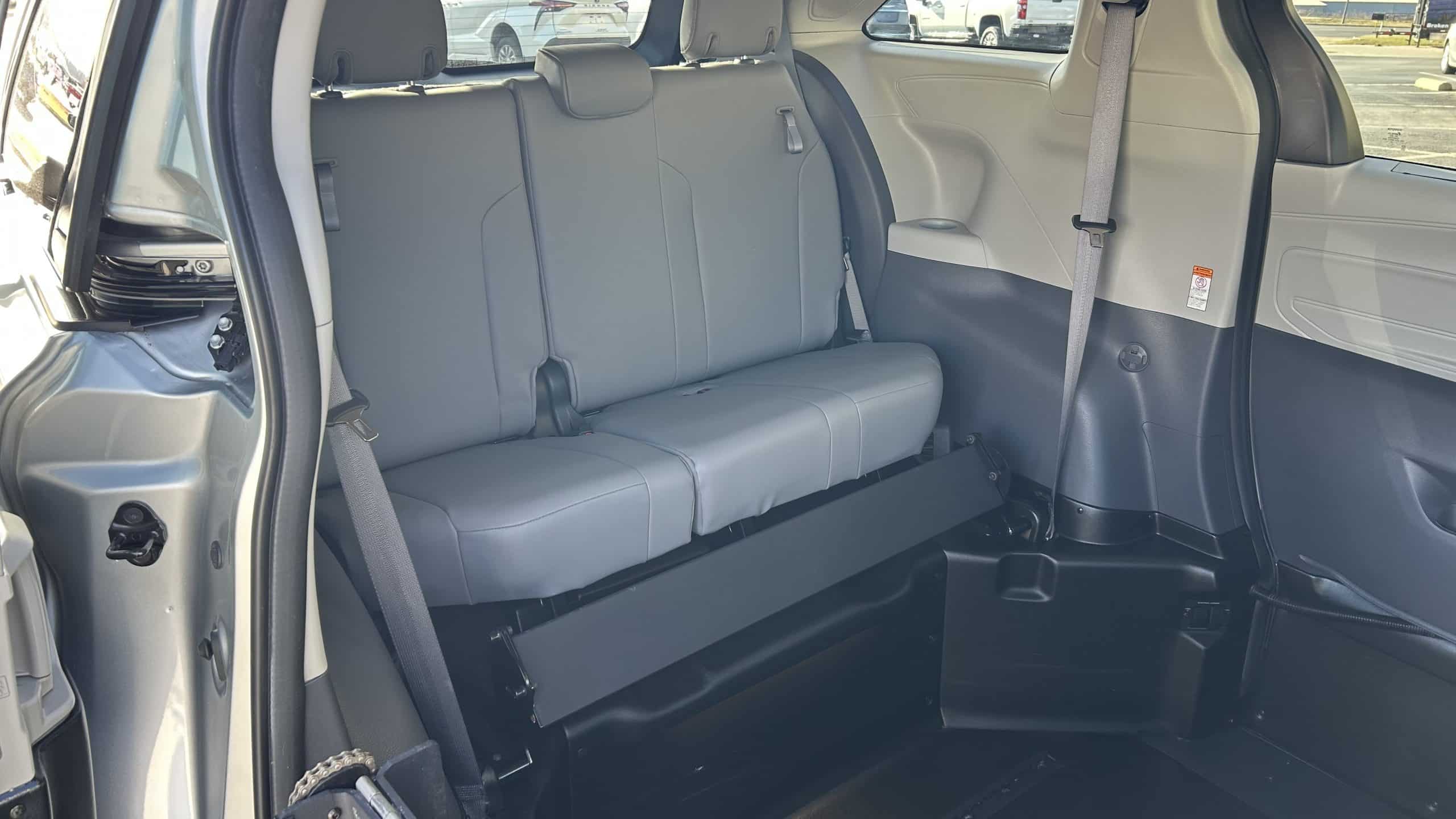 The Sienna features a powered wheelchair lock located in the mid-row position, which may be left installed or removed at the buyer’s request.