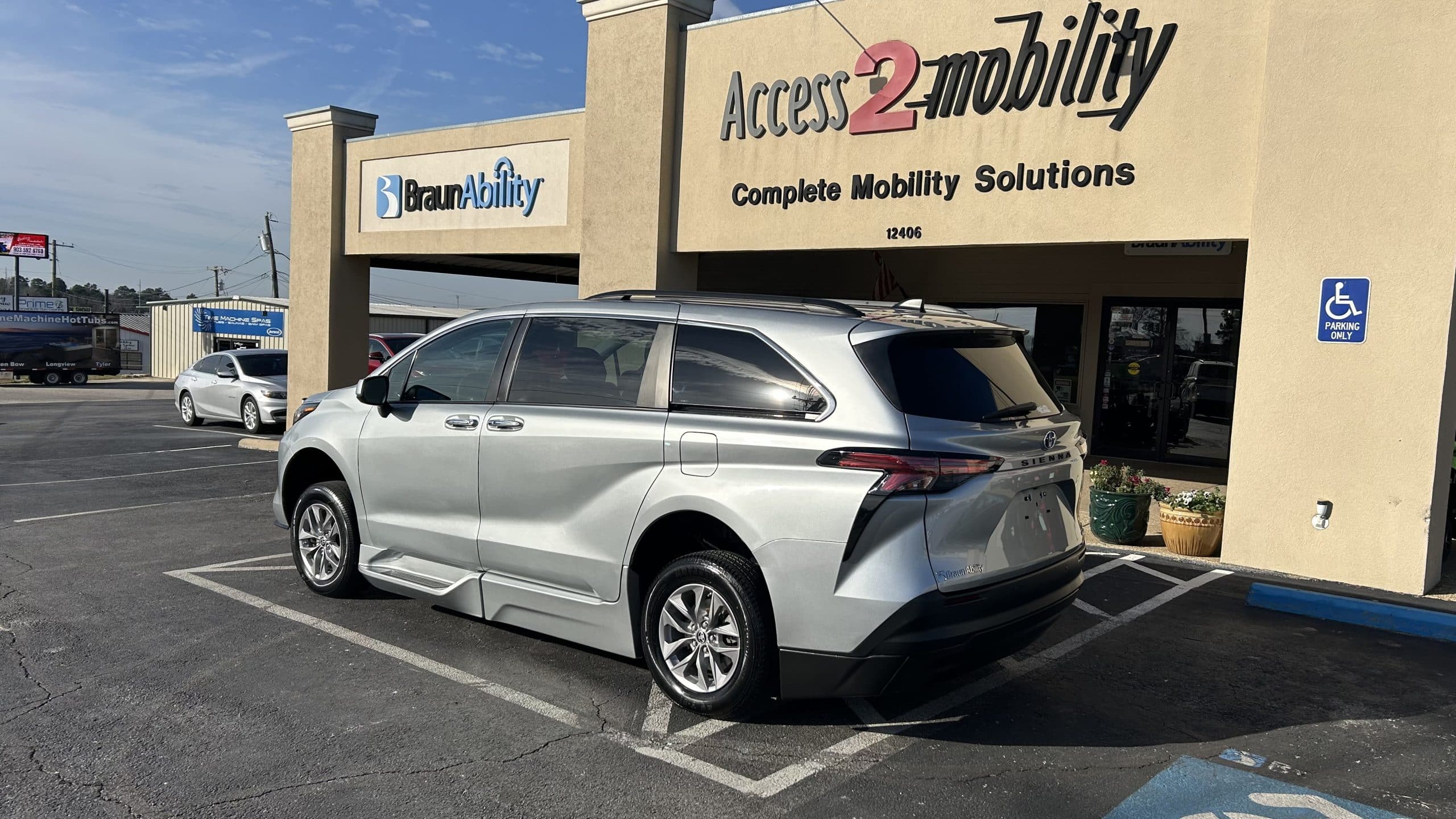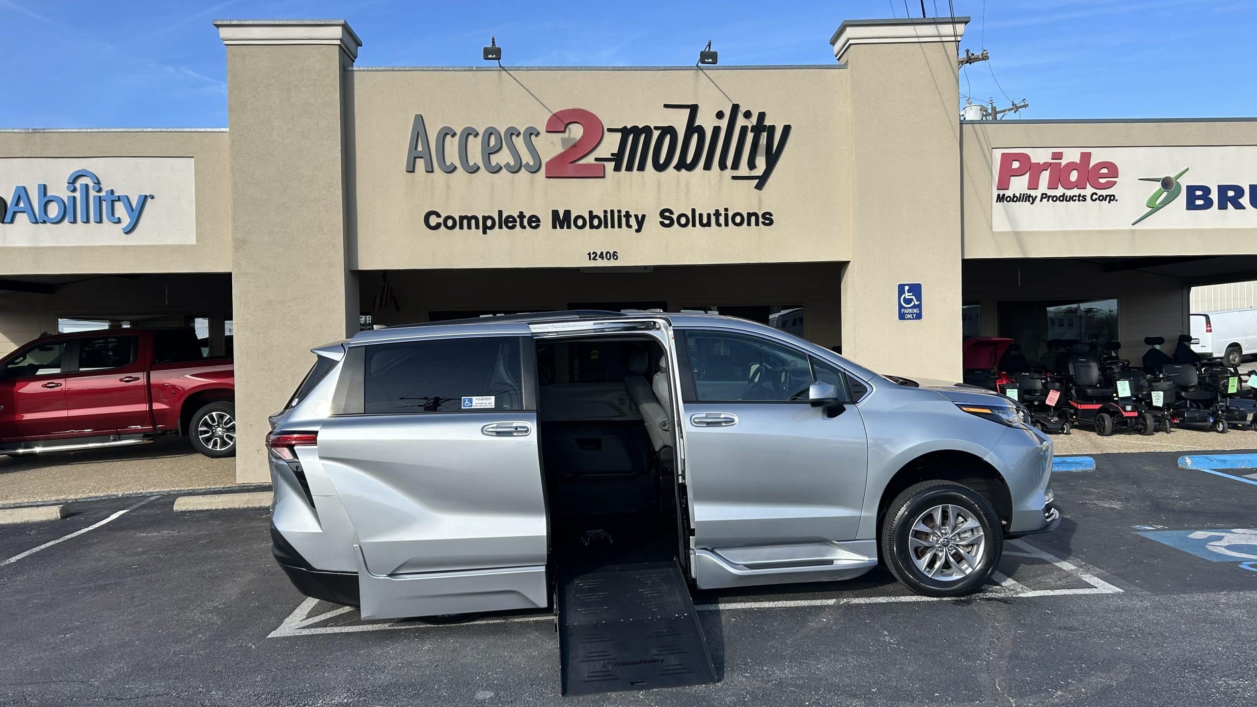This 2022 Toyota Sienna XLE Wheelchair Accessible Vehicle is Pre-Owned and equipped with a Pre-Owned BraunAbility powered fold-out ramp. Both passenger-area sliding doors are powered for added convenience and ease of access.
